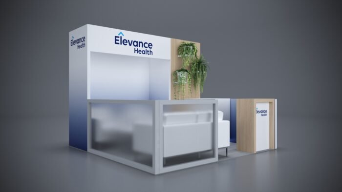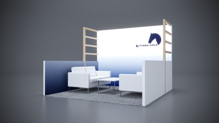 Impress attendees with meeting areas, reception counters, and storage integrated into a larger display.