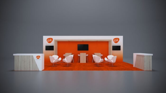 Impress attendees with meeting areas, reception counters, and storage integrated into a larger display.
